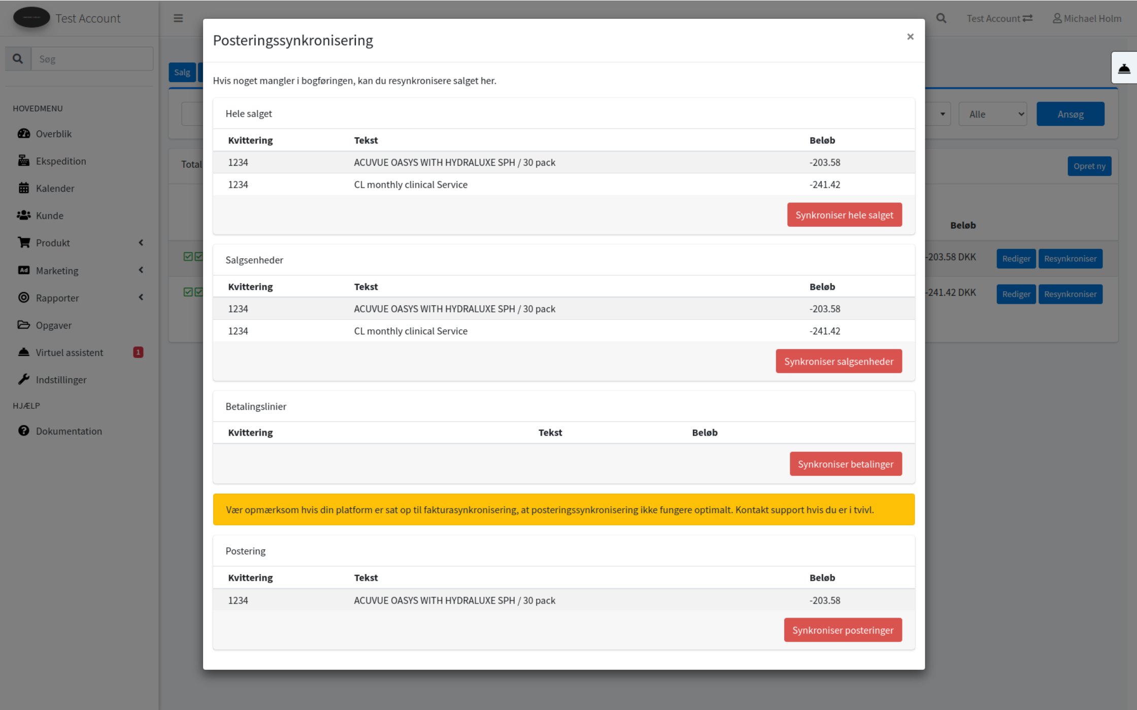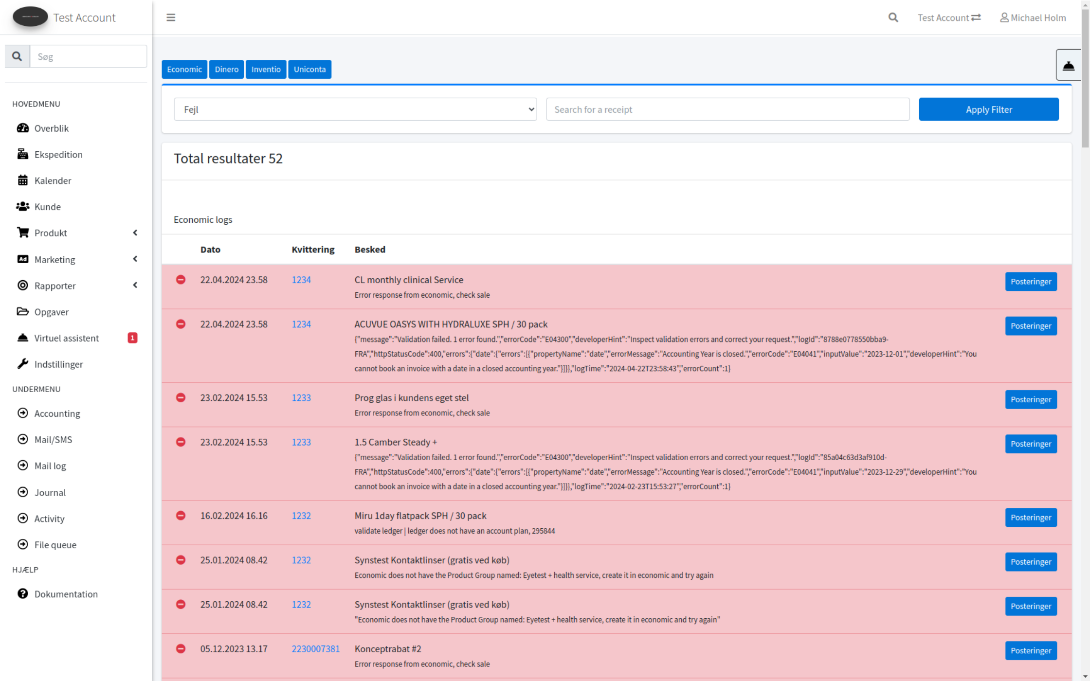 Fælles for dem alle er, at disse synkroniseringsfejl samler vi under Indstillinger > System > Log > Accounting, her kan man se alt vi sender til regnskabssystemerne, og hvad der er gået galt.