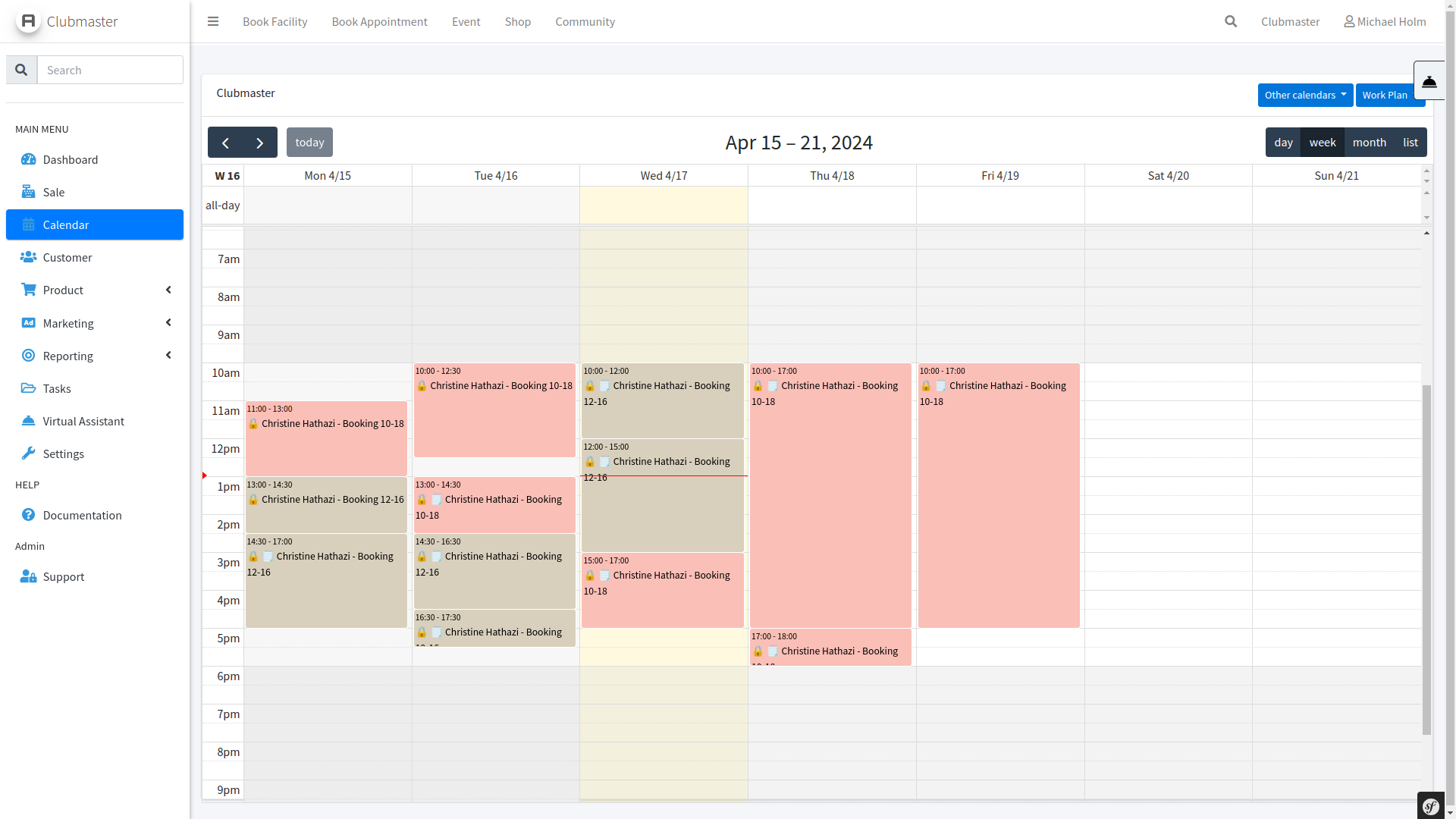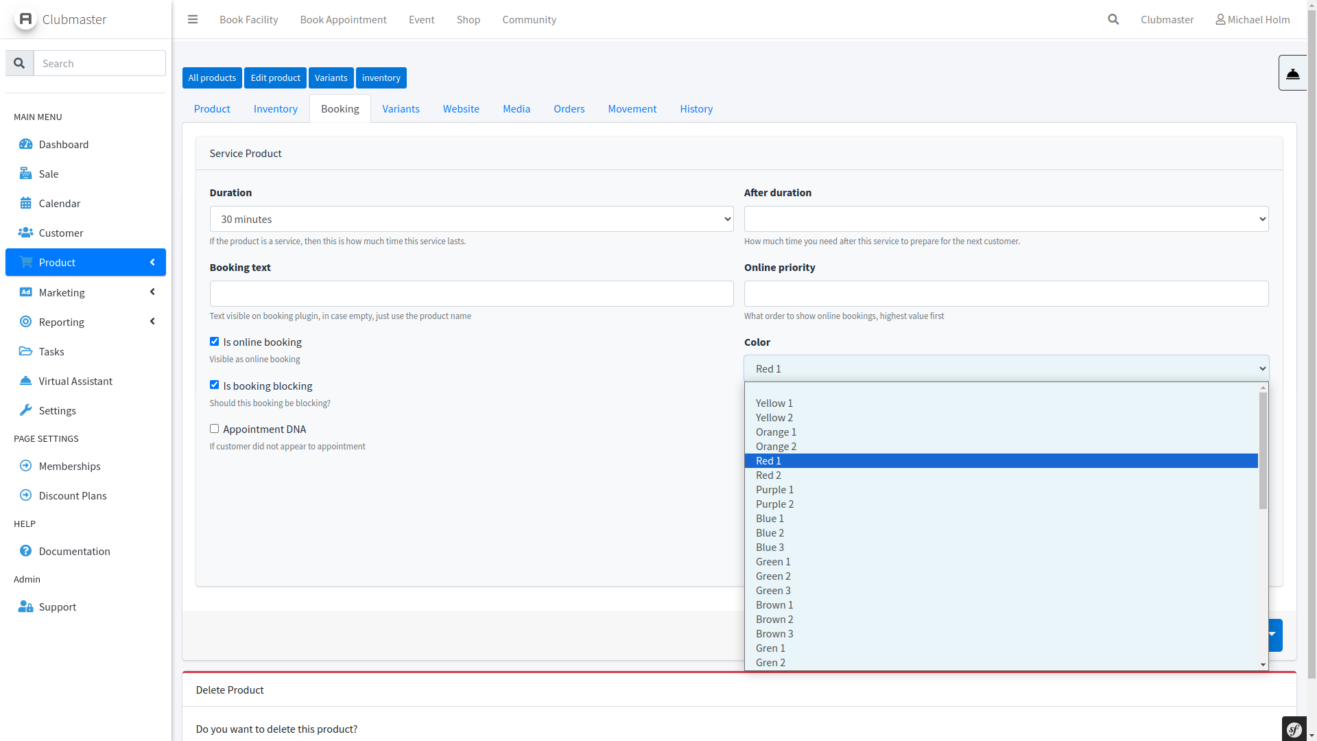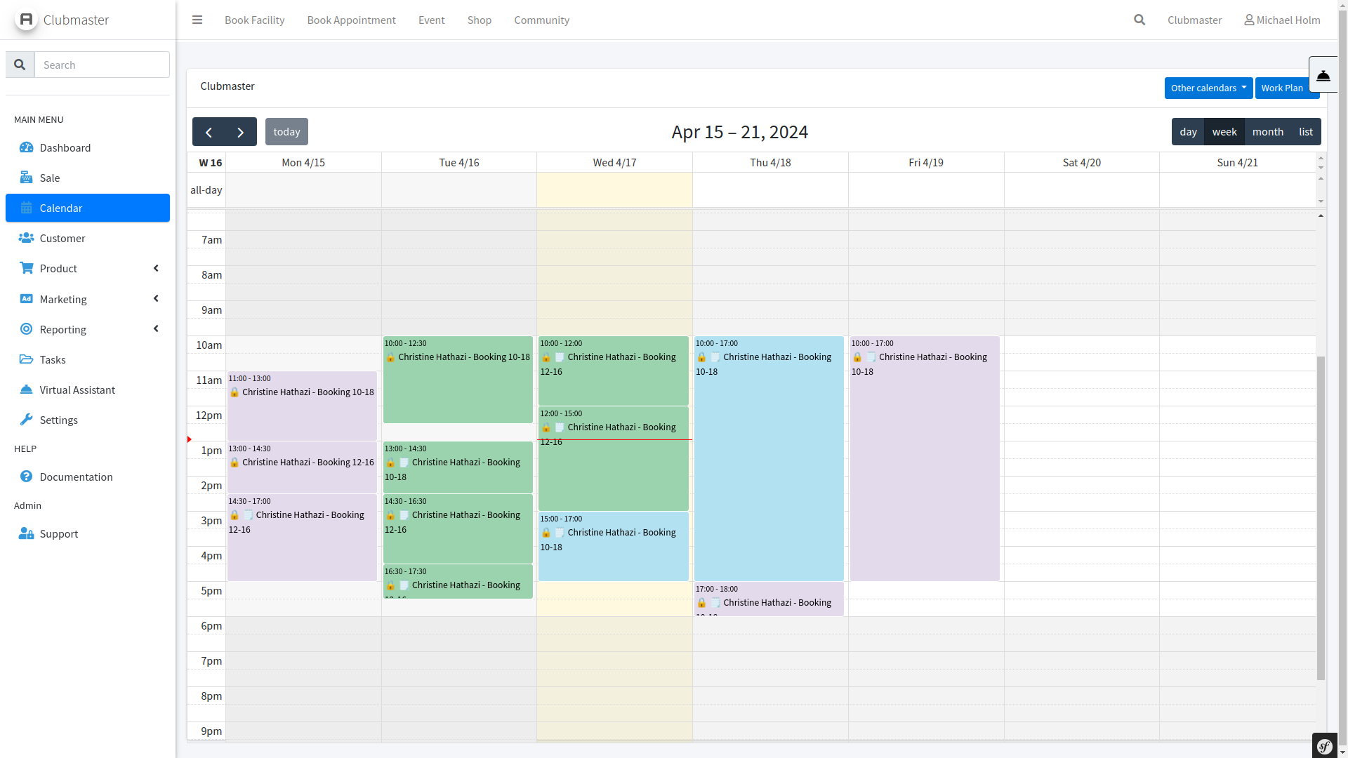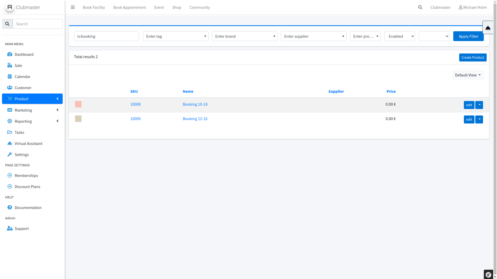 Og du vil nu se alle produkter som kan bookes i kalenderen.