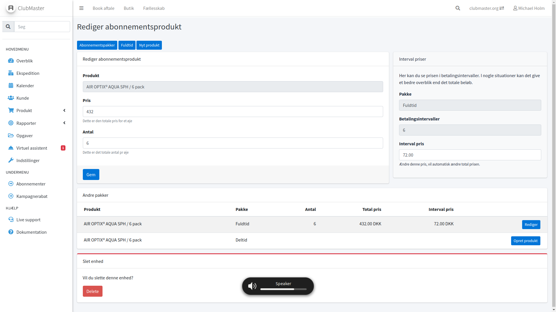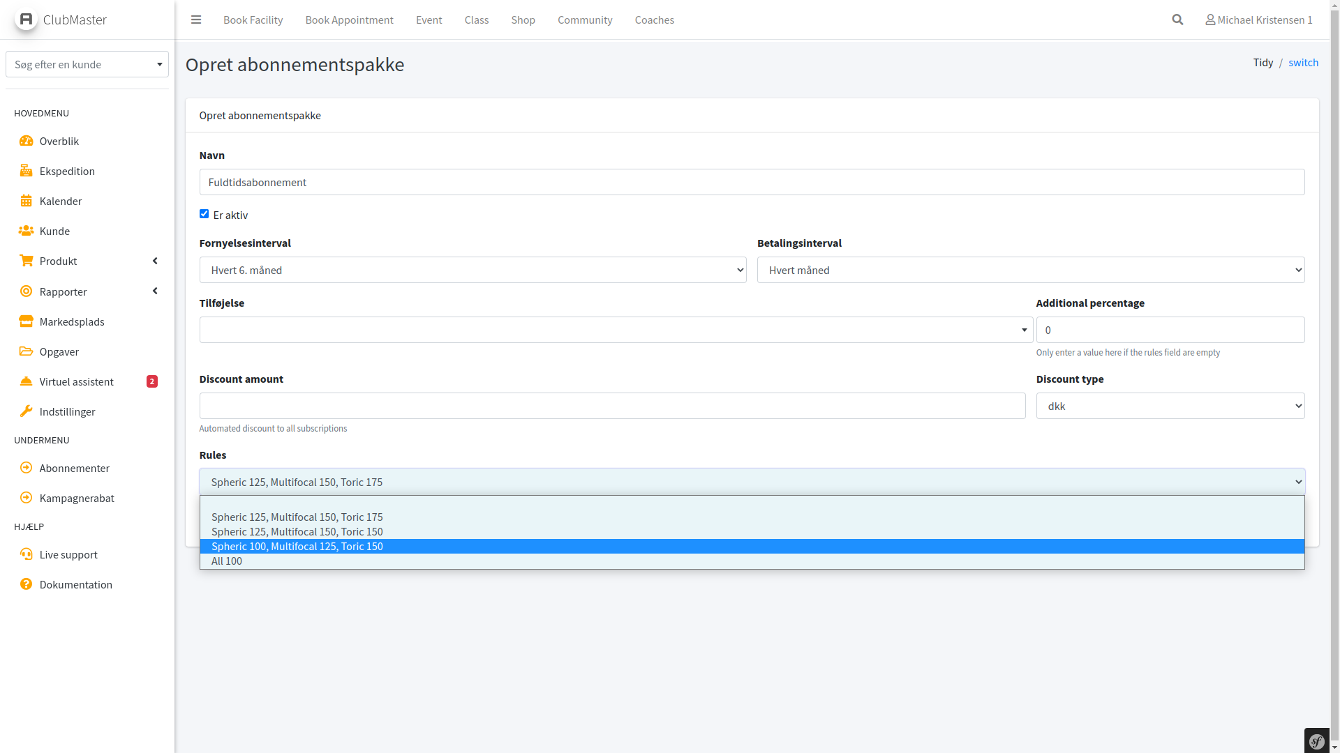 Hvis du ønsker at køre med fuldtid samt deltidsabonnementer, kan du oprette disse i OptikPartner under Indstillinger > Produkter > Abonnementspakker.