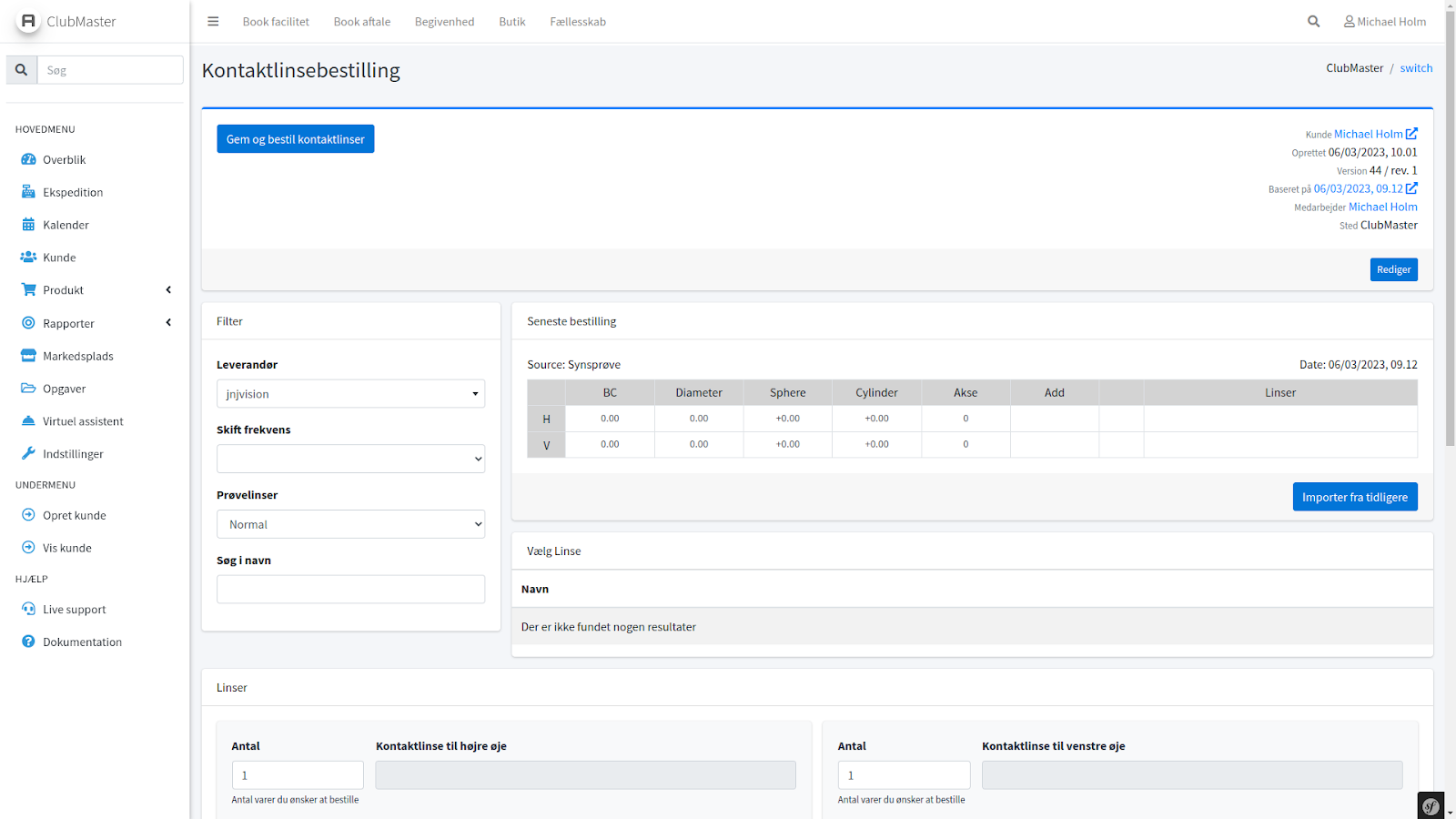 Når du skal have oprettet en glasbestilling, kan du gøre det på samme måde som ved oprettelse af synsprøve. Du skal blot vælge “Kontaktlinsebestilling” i stedet for “Synsprøve”.