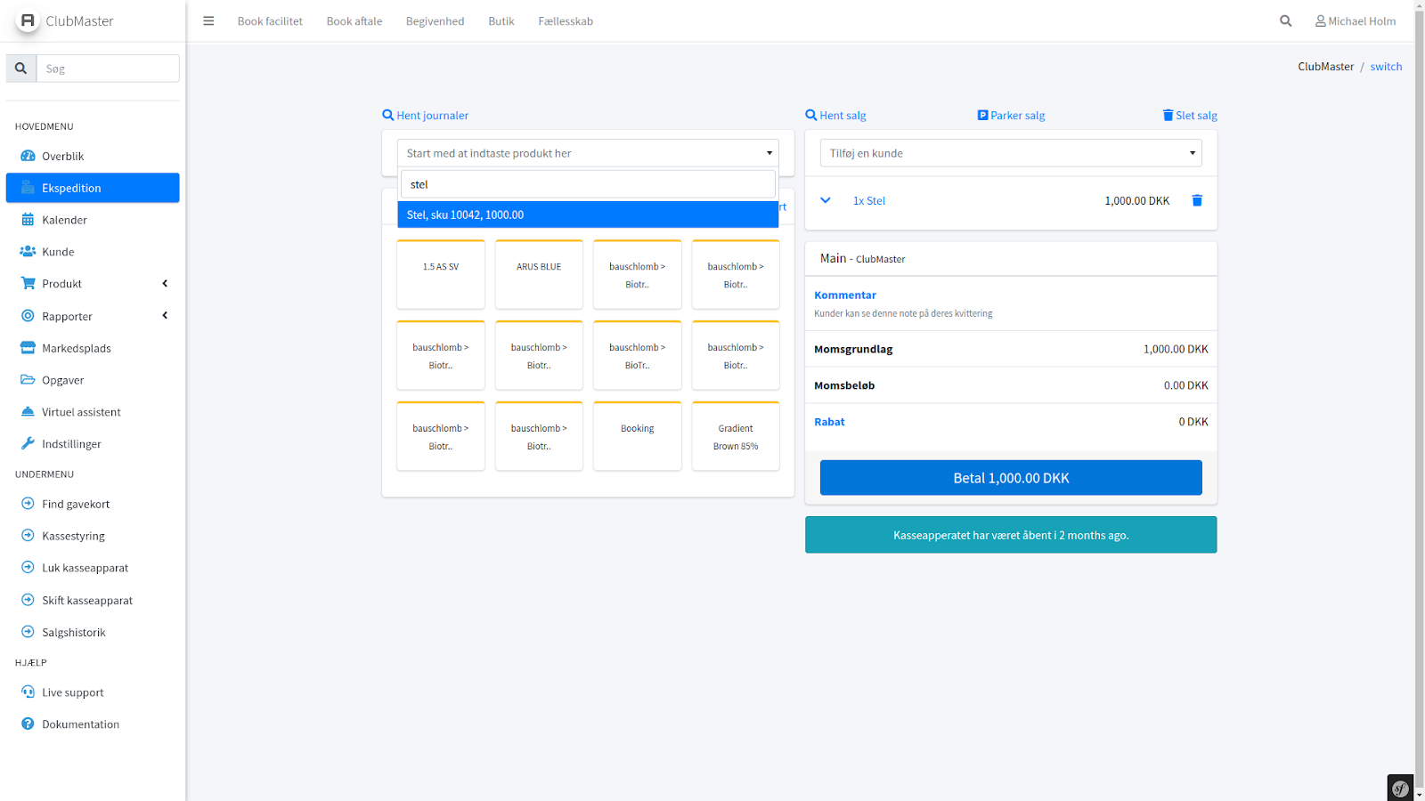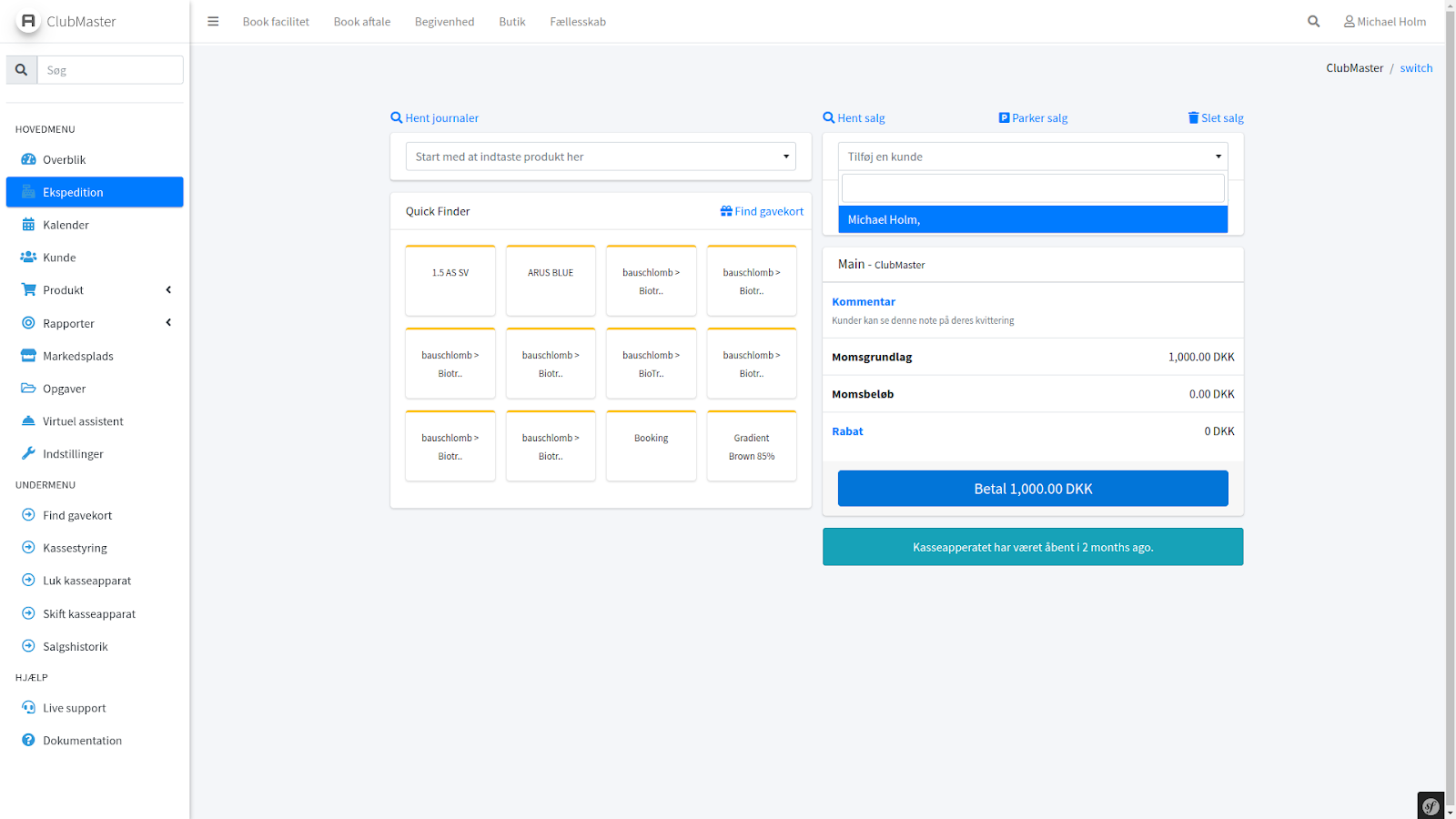 Tilføj en kunde til salget, ved at søge i boksen ovenfor produkterne i kurven