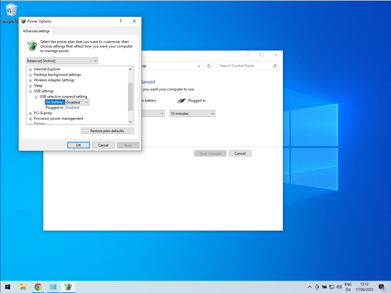 Find USB settings i listen, og vælg On battery og Plugged in skal begge være disabled.