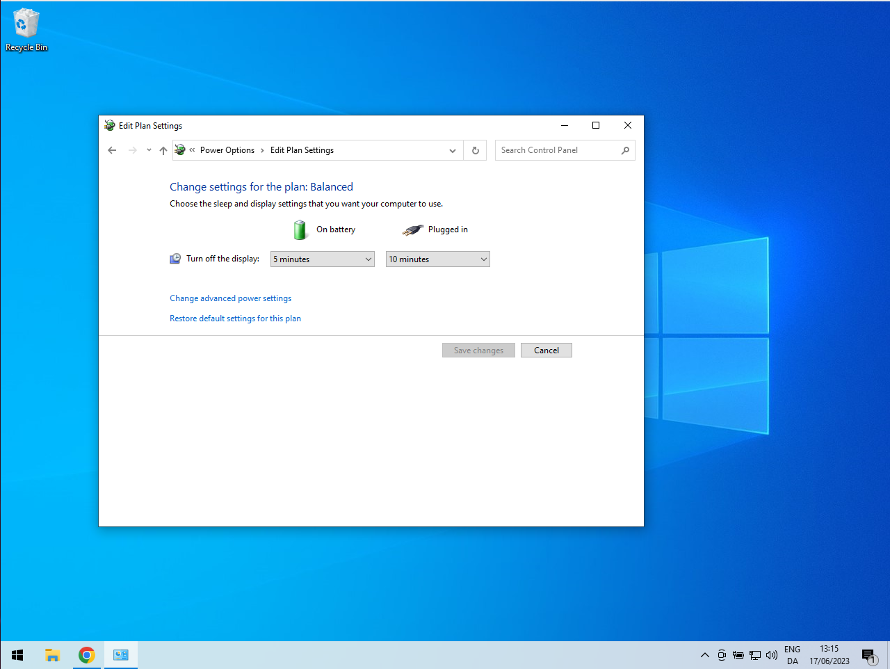 Gå til Change advanced power settings