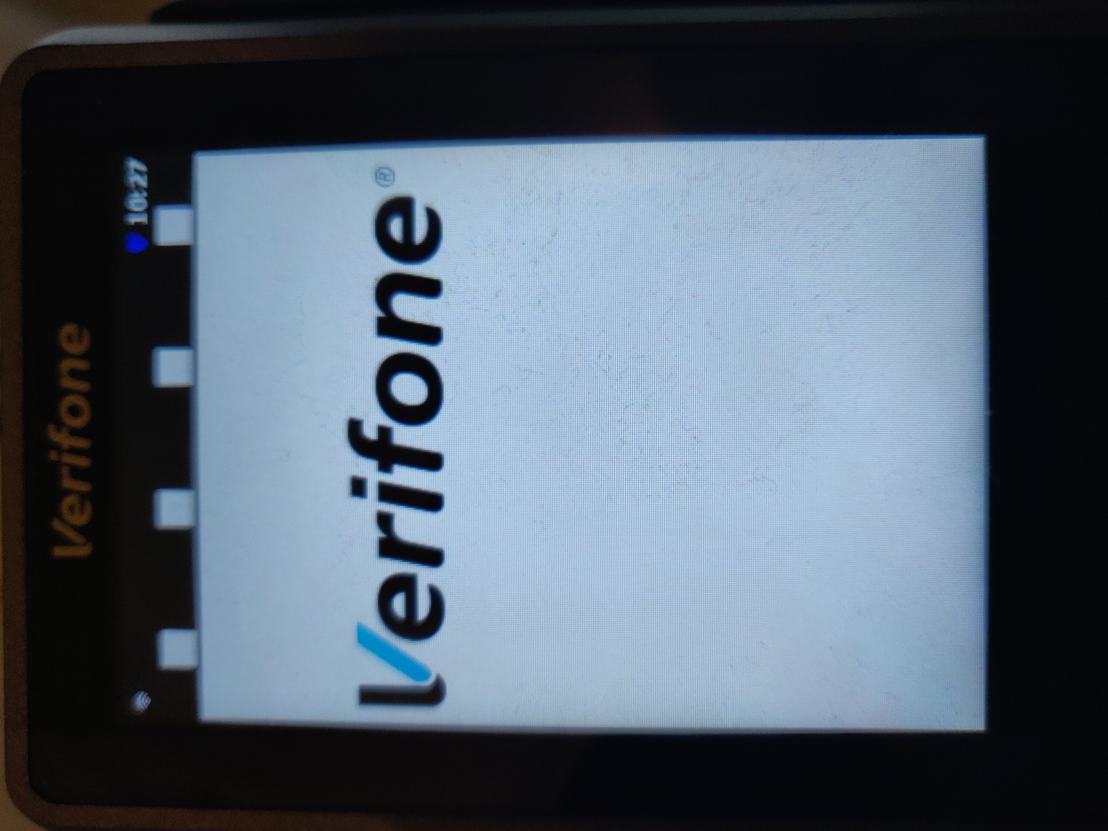 Når du er færdig skal der gerne stå blot ordet VERIFONE midt på terminalen.