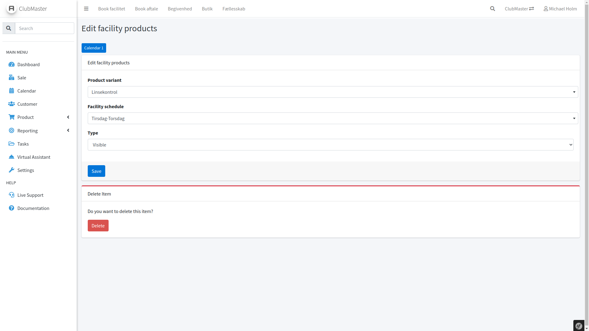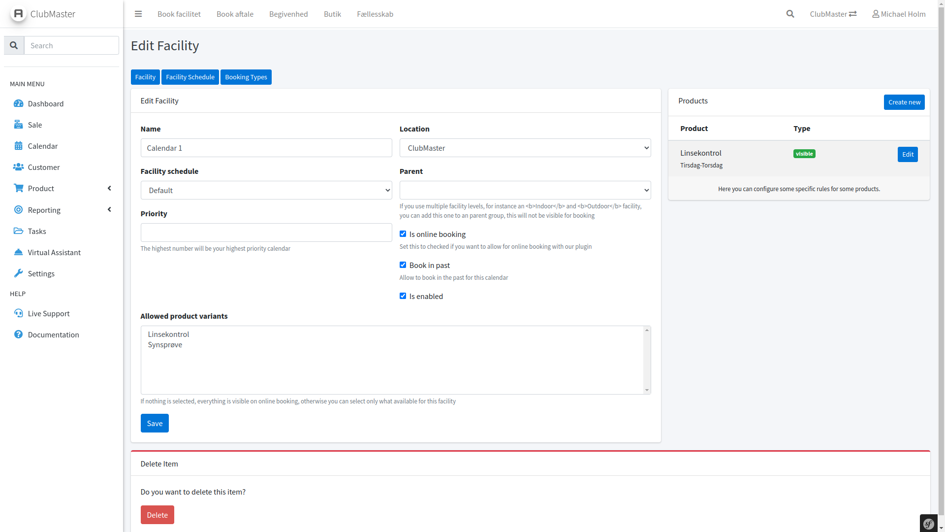 Gå derfor først til Indstillinger > Booking > Facility og rediger den facilitet du ønsker at ændre.