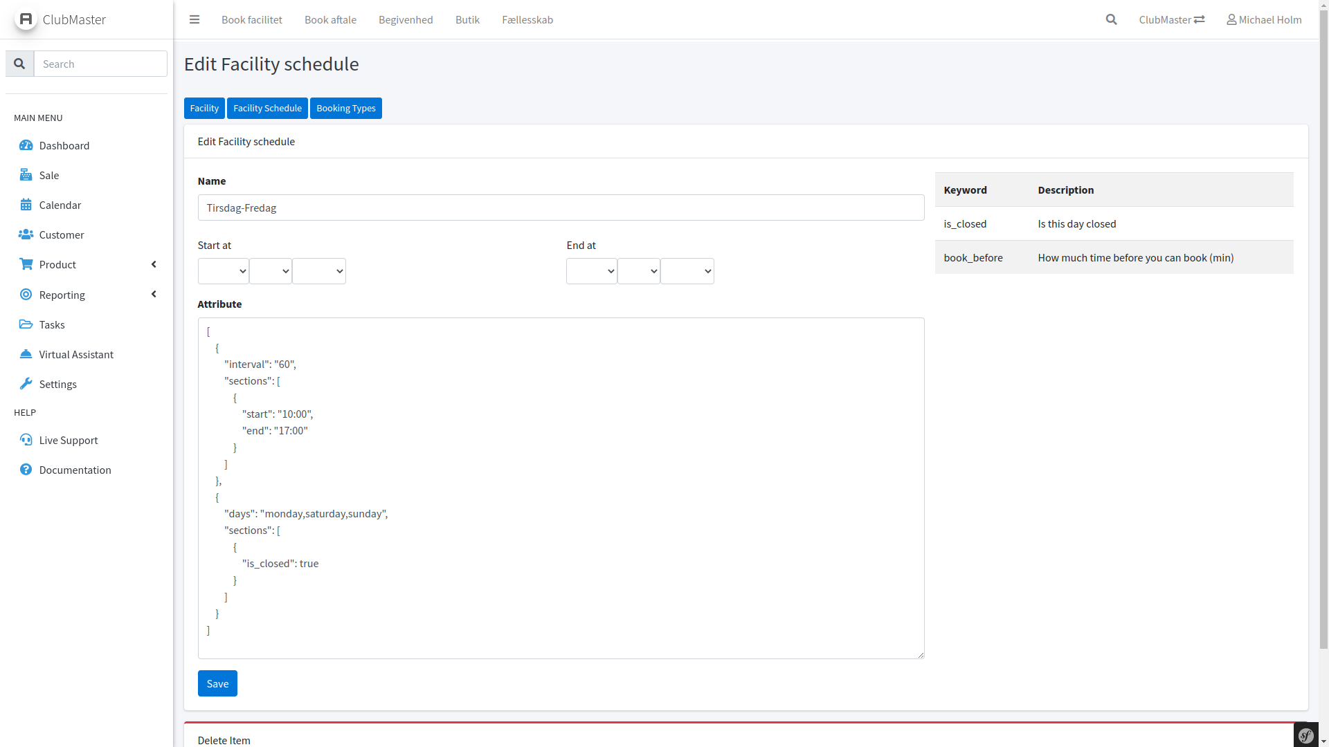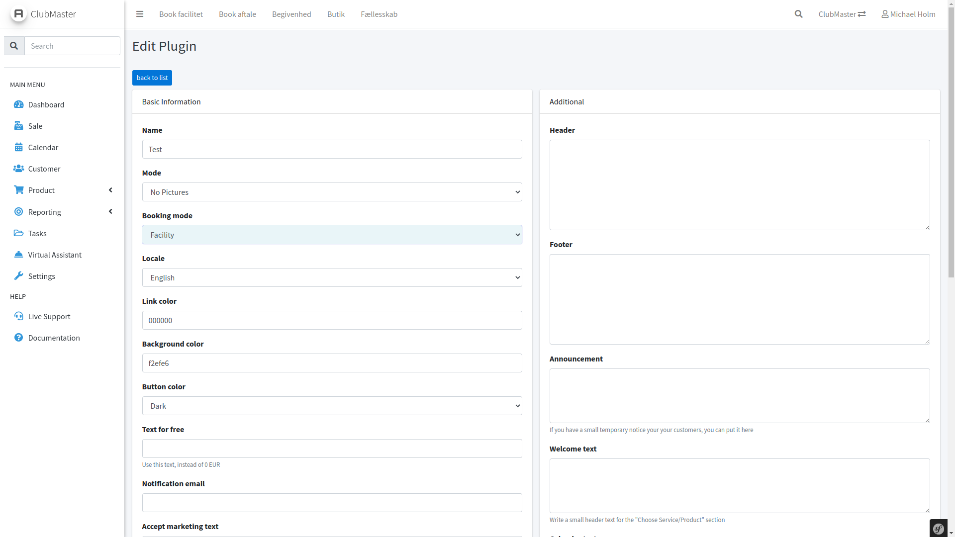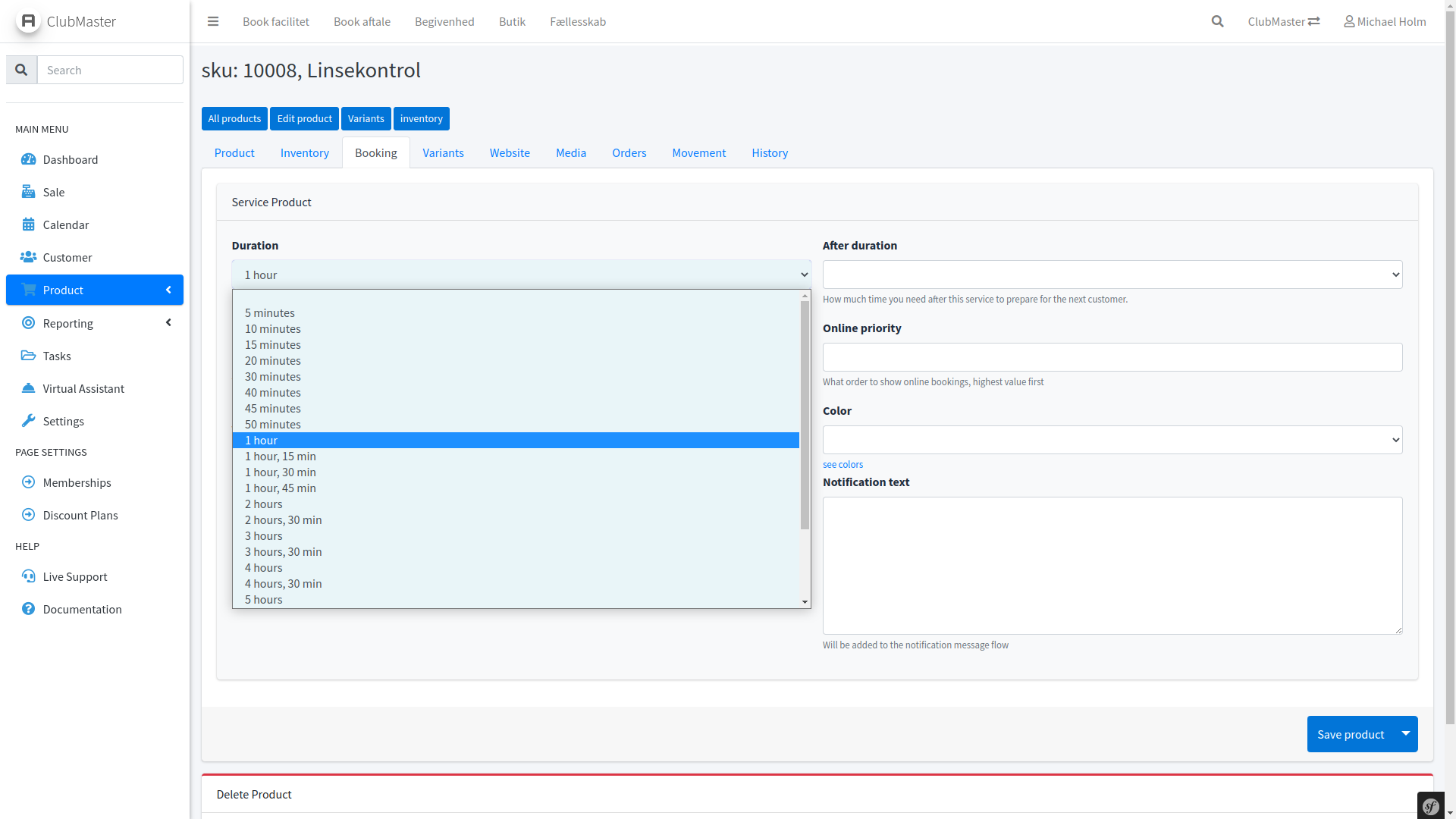 Disse skal i fanen Booking have aktiveret Is online booking samt Duration, som bestemmer hvor længe kunden skal booking i kalenderen.