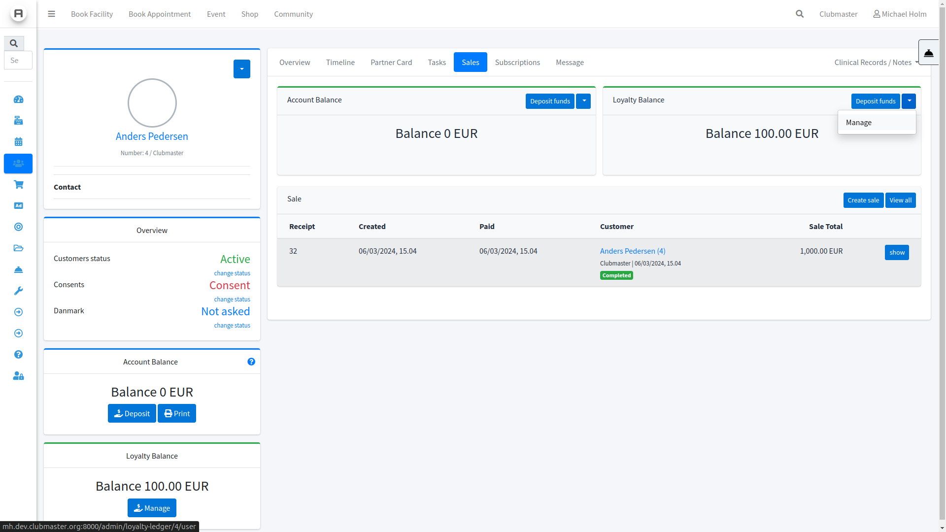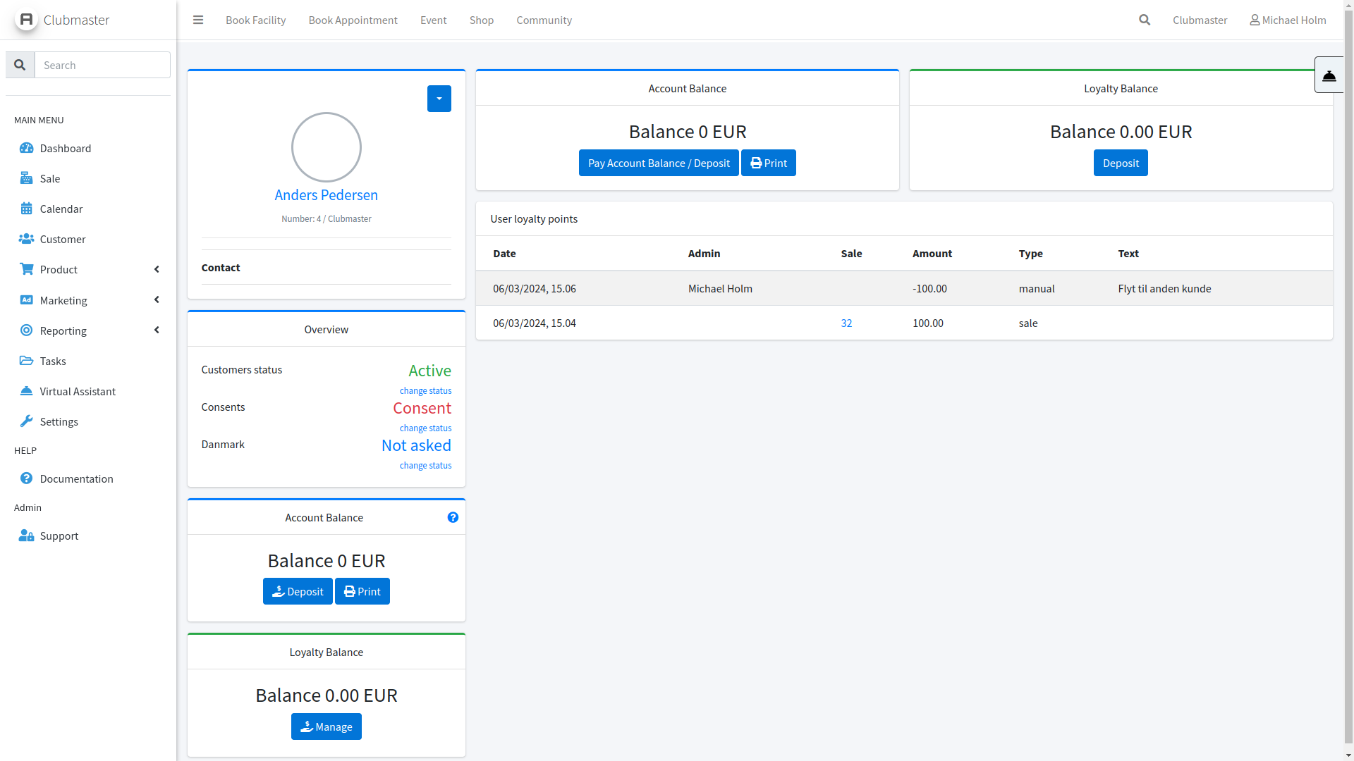 Du kan nu se en oversigt over at pengene er flyttet, og kunden kan nu bruge disse penge i et salg.