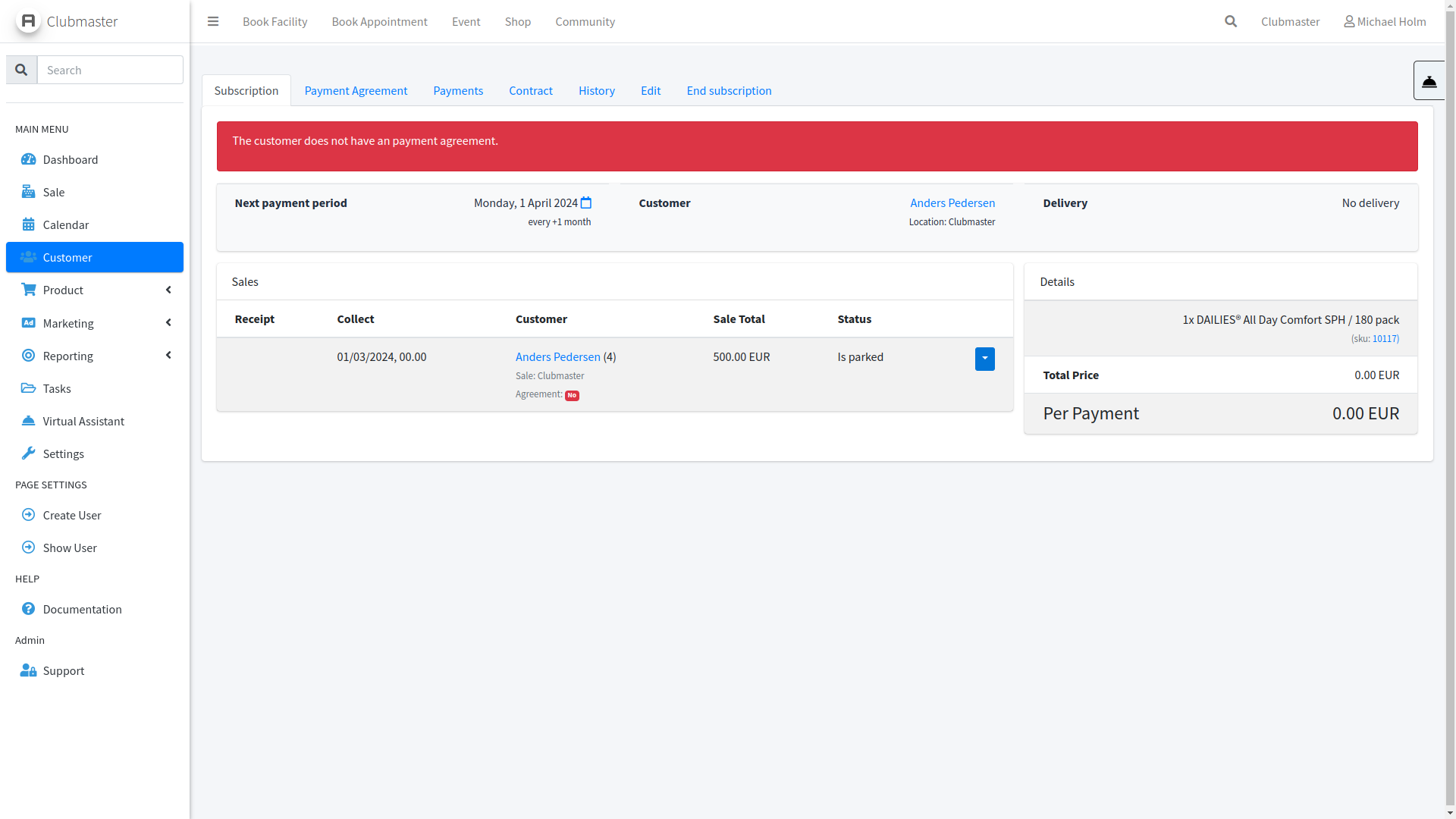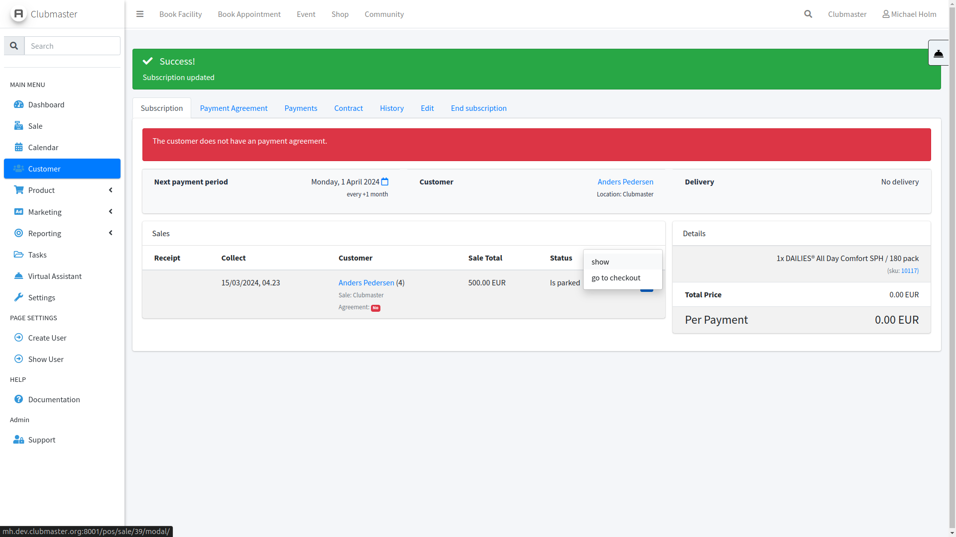 Gå først til kundens abonnement via deres profil side og fanen Abonnement.