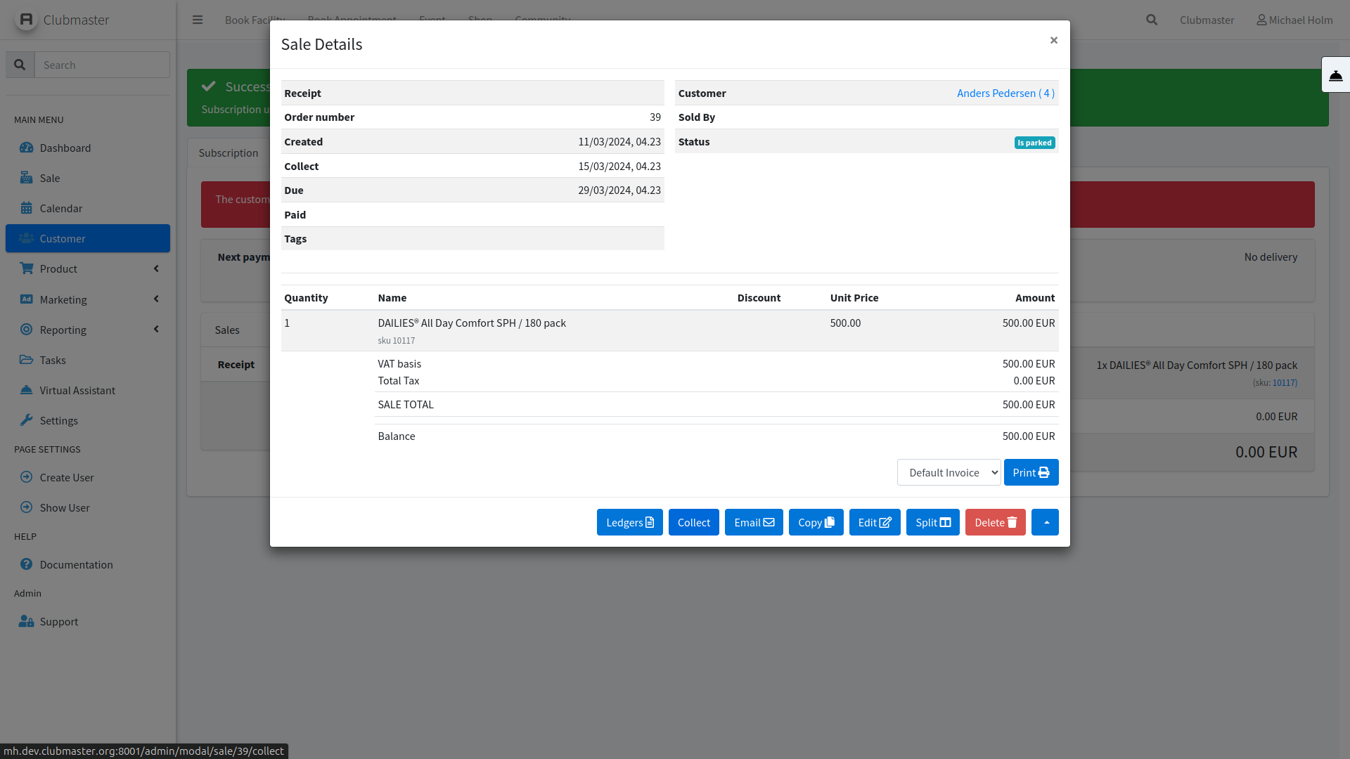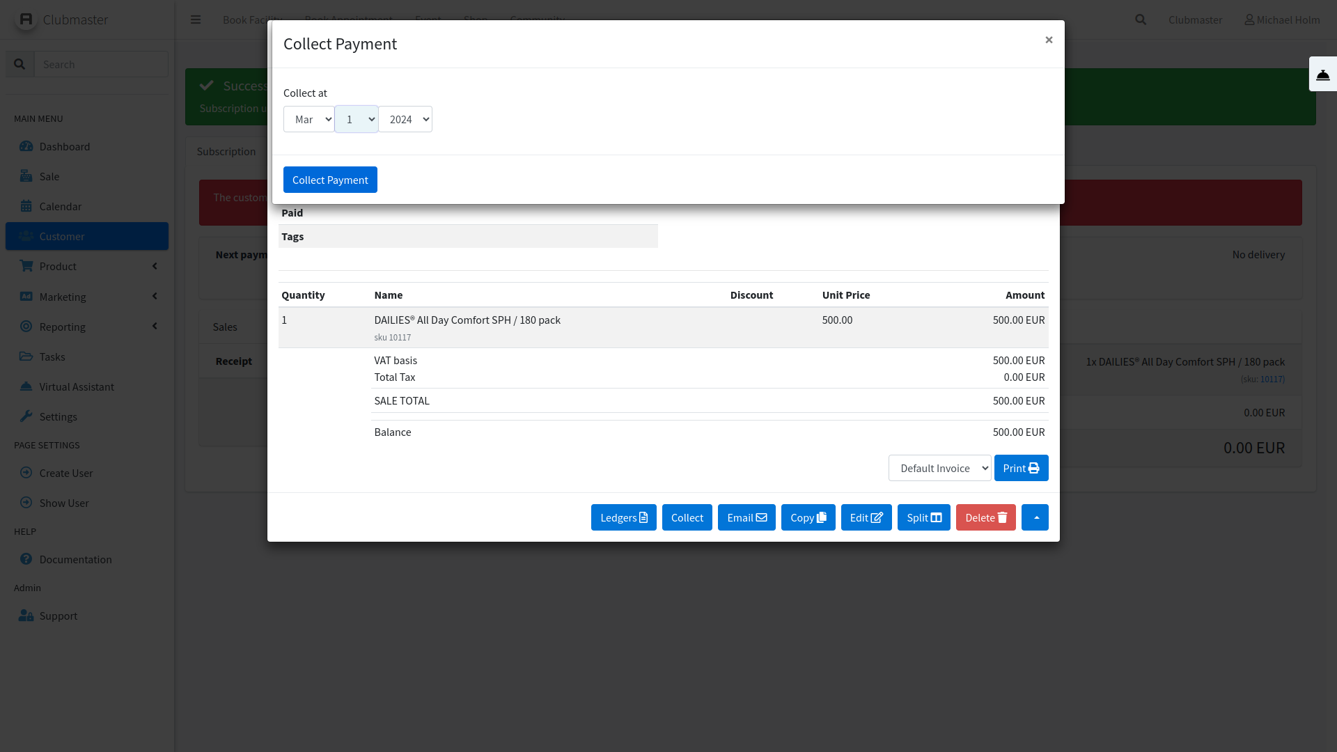 Du er nu tilbage på abonnementsoverblikket, her kan du passende bekræfte øverst at Næste betalingsperiode er skiftet til den ønskede dato.