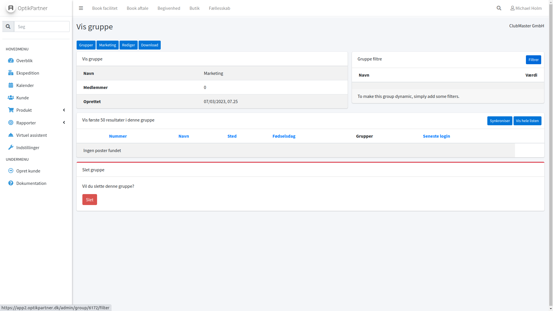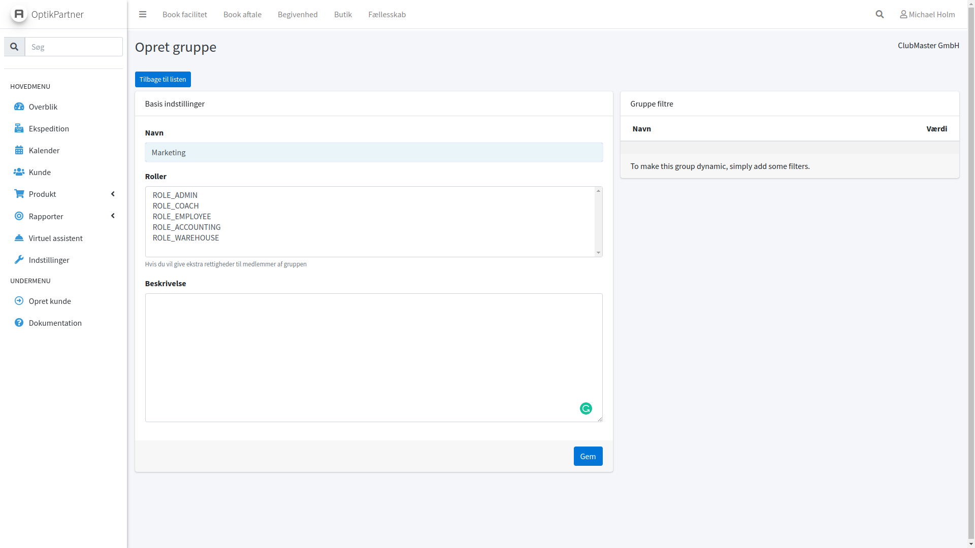 Du kan oprette 2 typer af grupper i OptikPartner. Statiske grupper du selv tildeler medlemmer, og dynamiske grupper hvor de bliver langt ind med filtresøgninger som automatisk tilpasser sig.
