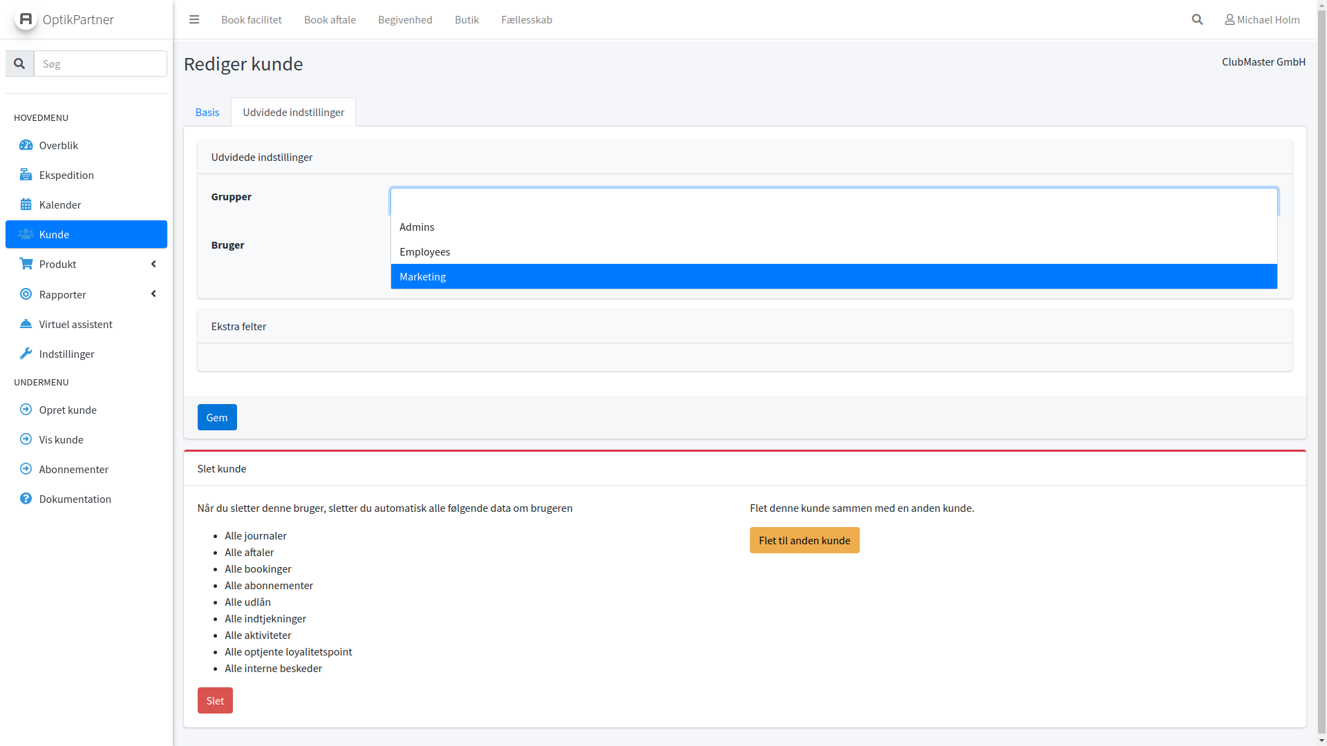 Her tildeler du nye medlemmer ved at redigere din kunde, og her kan du se et felt kalder under fanen Udvidet kaldet Grupper hvor du kan tildele alle de grupper du ønsker.